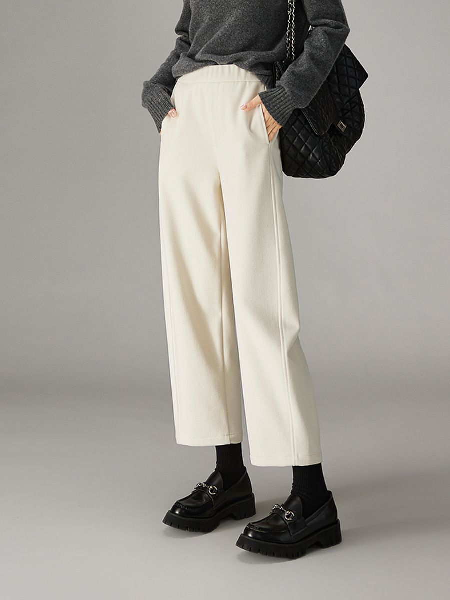 この白パンツは、裏起毛素材を使用し、寒い季節でも快適さを提供します。ストレートシルエットが美しいラインを演出し、どんなコーディネートにもマッチ。シンプルながらも洗練されたデザインは、カジュアルからきれいめスタイルまで幅広く活躍します。おしゃれを楽しむための必須アイテムとして、ぜひクローゼットに加えてください。