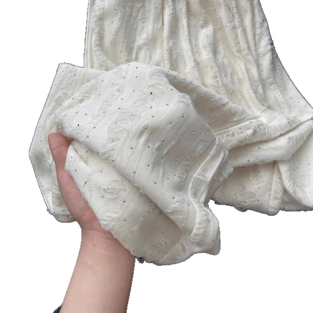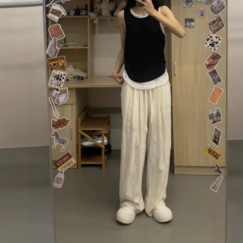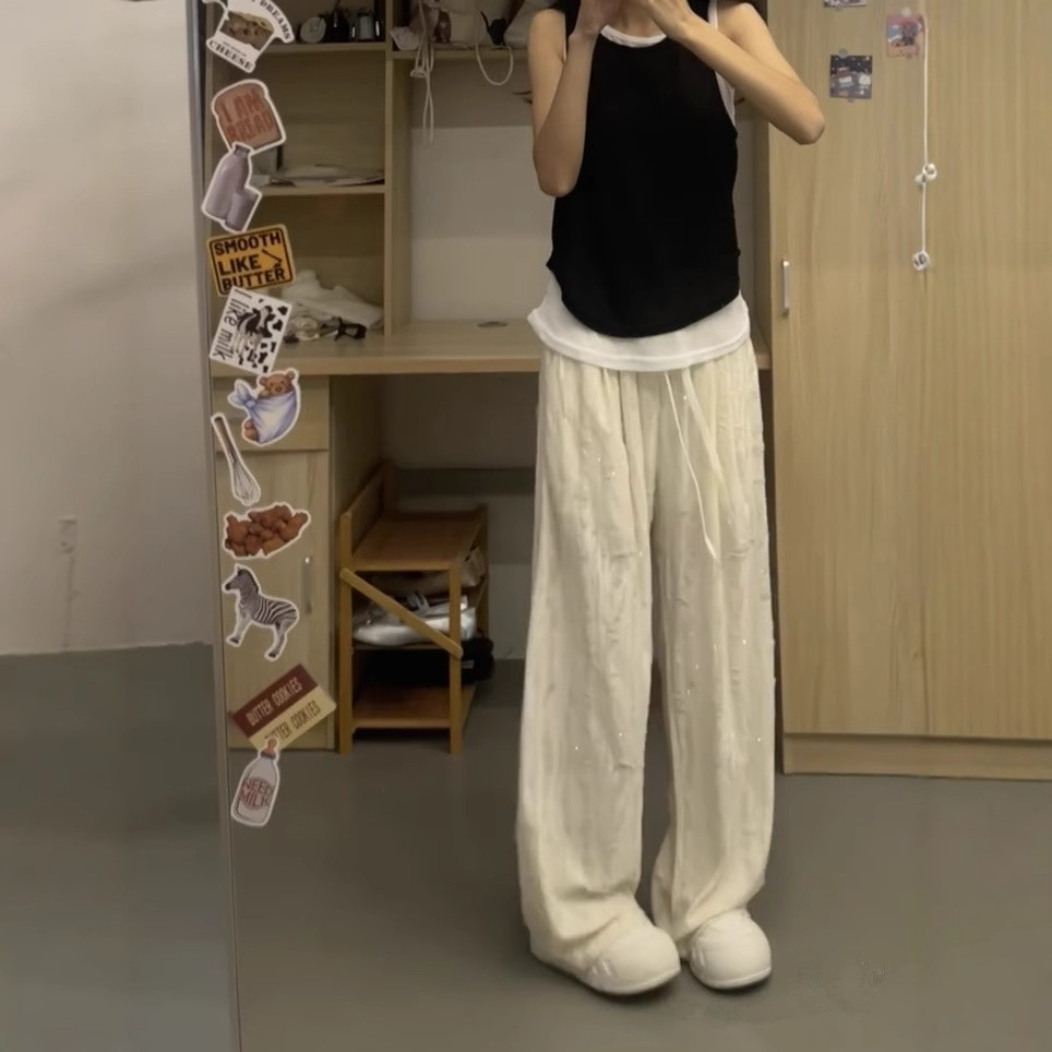夏にぴったりの涼しい素材を使用したハイウエストデザインの白パンツです。