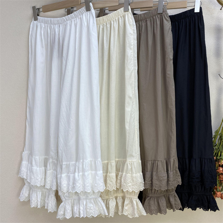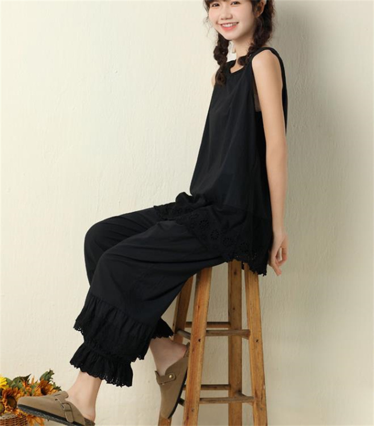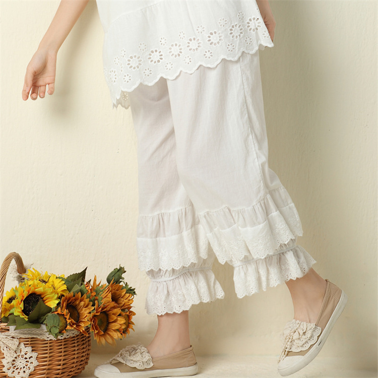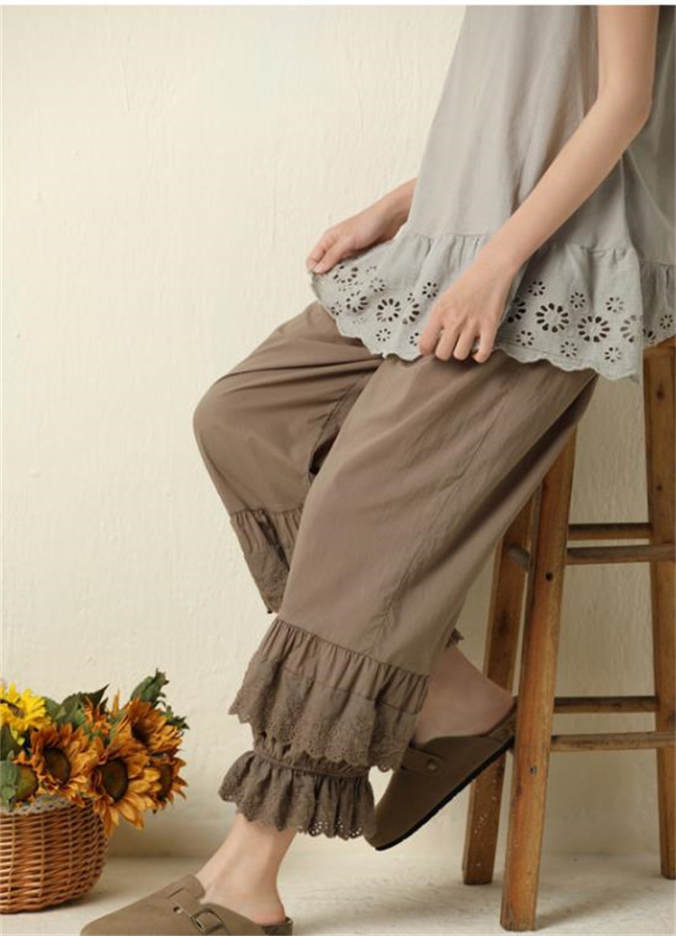 裾のフリルデザインが可愛らしく、ゆったりとした九分丈で快適な履き心地。