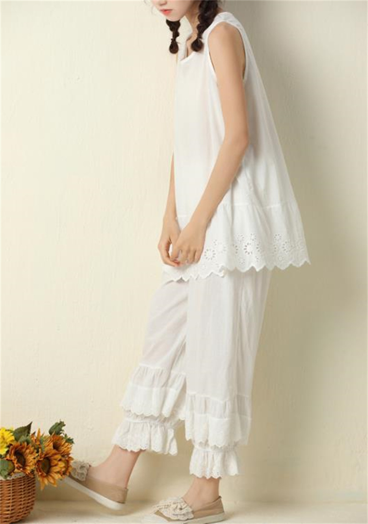 春夏にぴったりの白パンツ専門店こだわりの刺繍フリルワイドパンツ。
