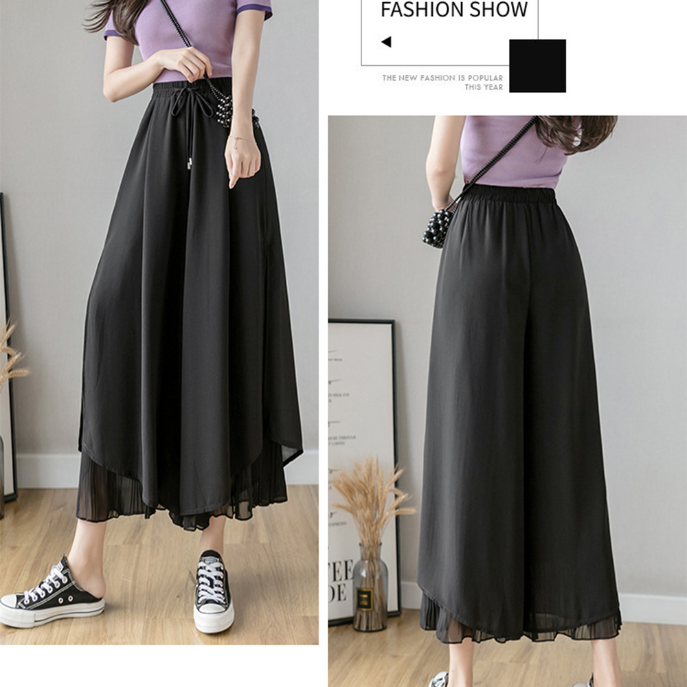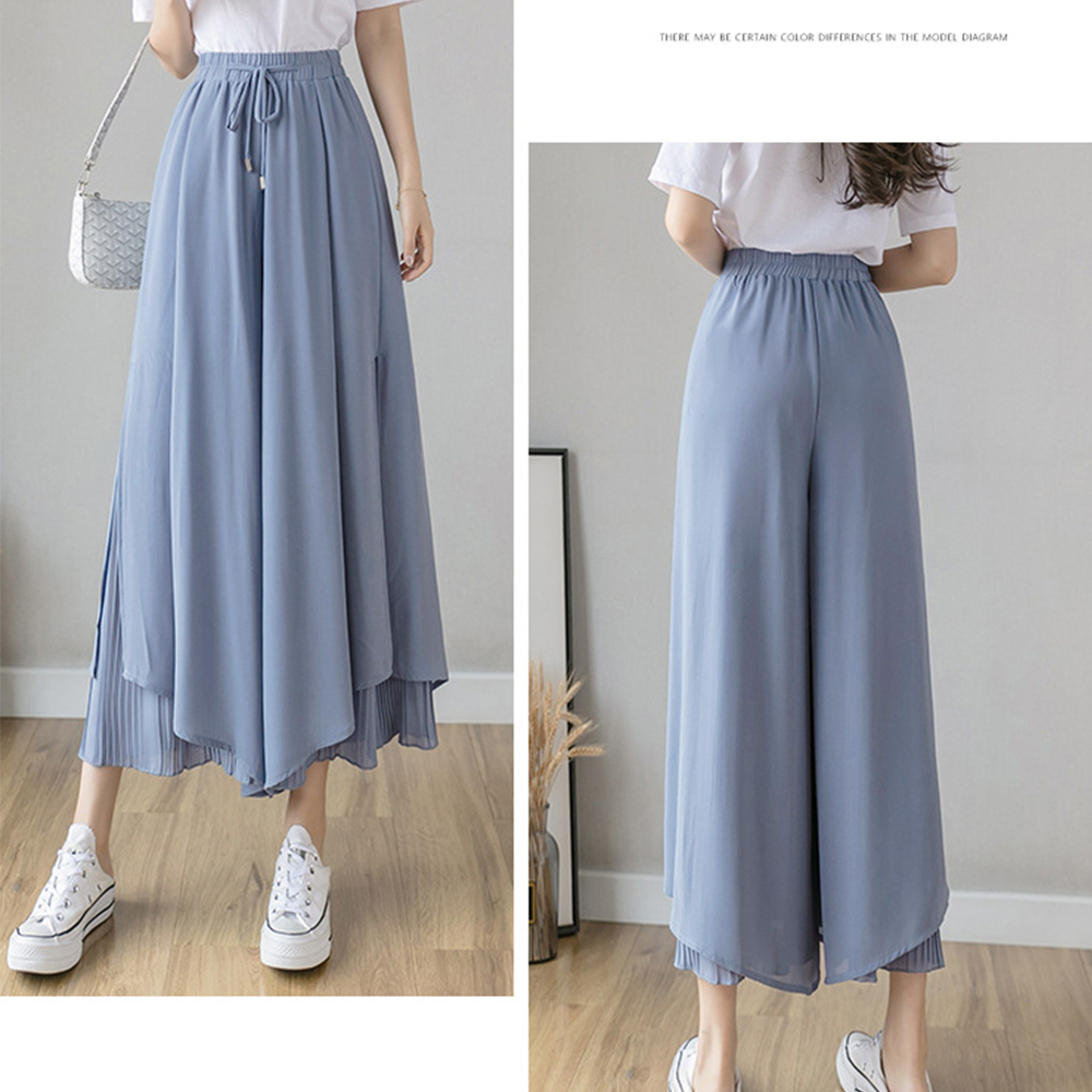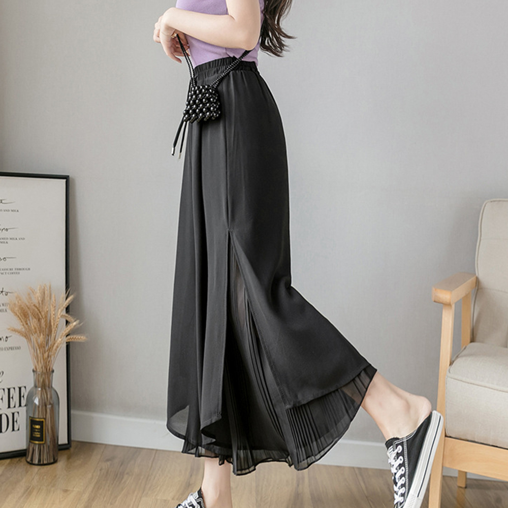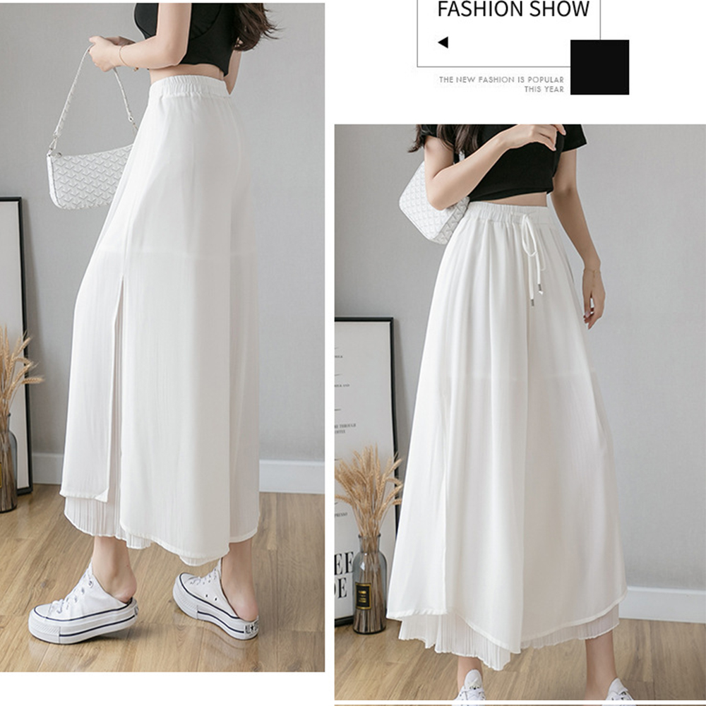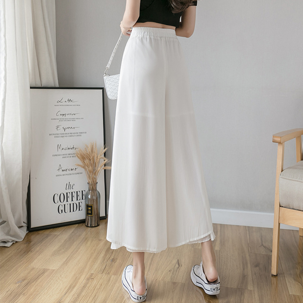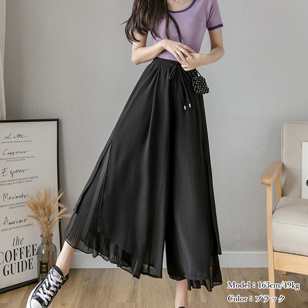 白パンツ専門店の軽やかシフォン素材を使用したワイドパンツ