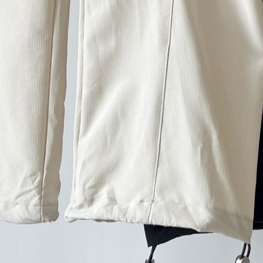 -10%軽量で動きやすいナイロン素材を使用した白パンツです。 両サイドに大きめのカーゴポケットを配置し、機能性とデザイン性を両立させました。 ウエストはゴム仕様で紐調整も可能なため、快適な履き心地を実現します。 裾は絞りデザインで立体的なシルエットを演出し、カジュアルからスポーティーまで幅広く着こなせます。 日常使いから軽いアウトドアまで対応できる実用的な一着です。