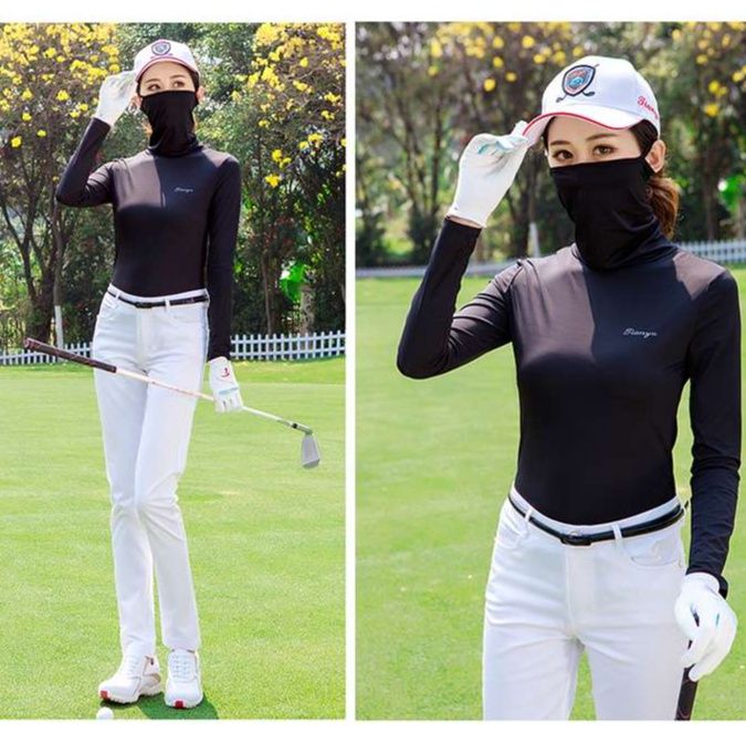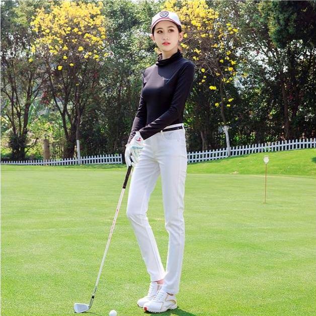 動きやすさと美しいシルエットを両立したゴルフ向けロングパンツ。