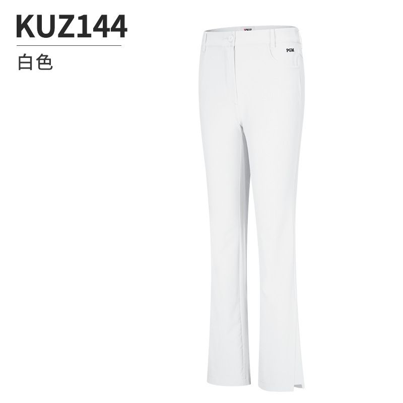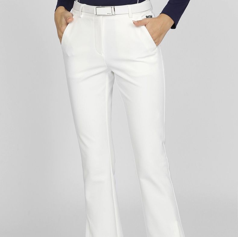 ゴルフウェアに最適なフレアシルエットの白パンツです。