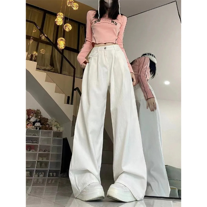 白パンツの清潔感とワイドシルエットで着痩せ効果抜群です。