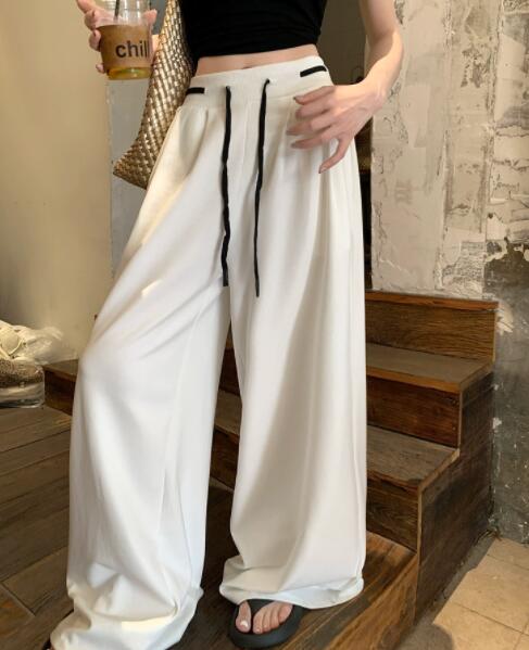 腰紐付きでウェストの調整も可能、ゆったりとしたシルエットが美脚効果を演出。