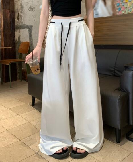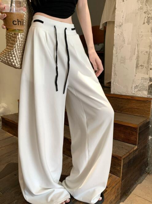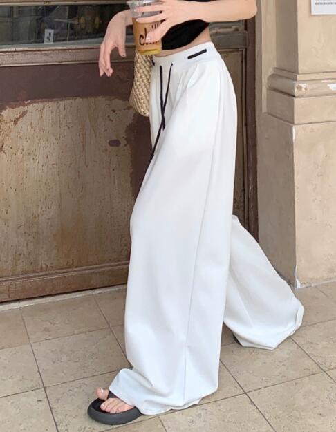 清潔感のある白パンツでおしゃれに決まるハイウェストワイドパンツ。