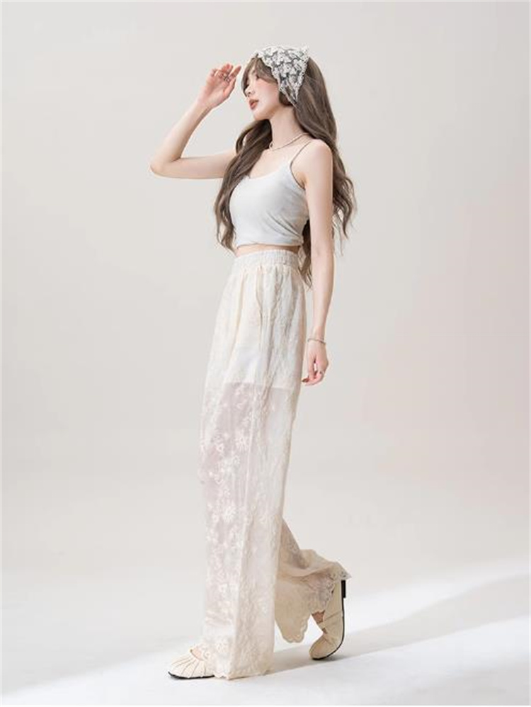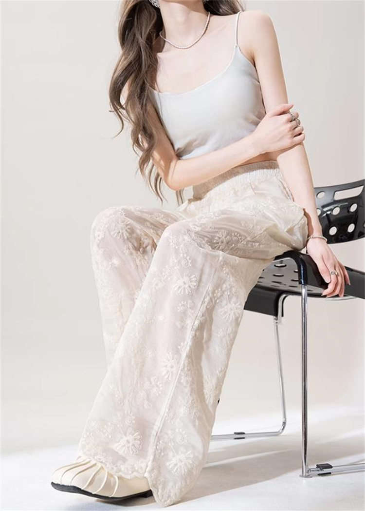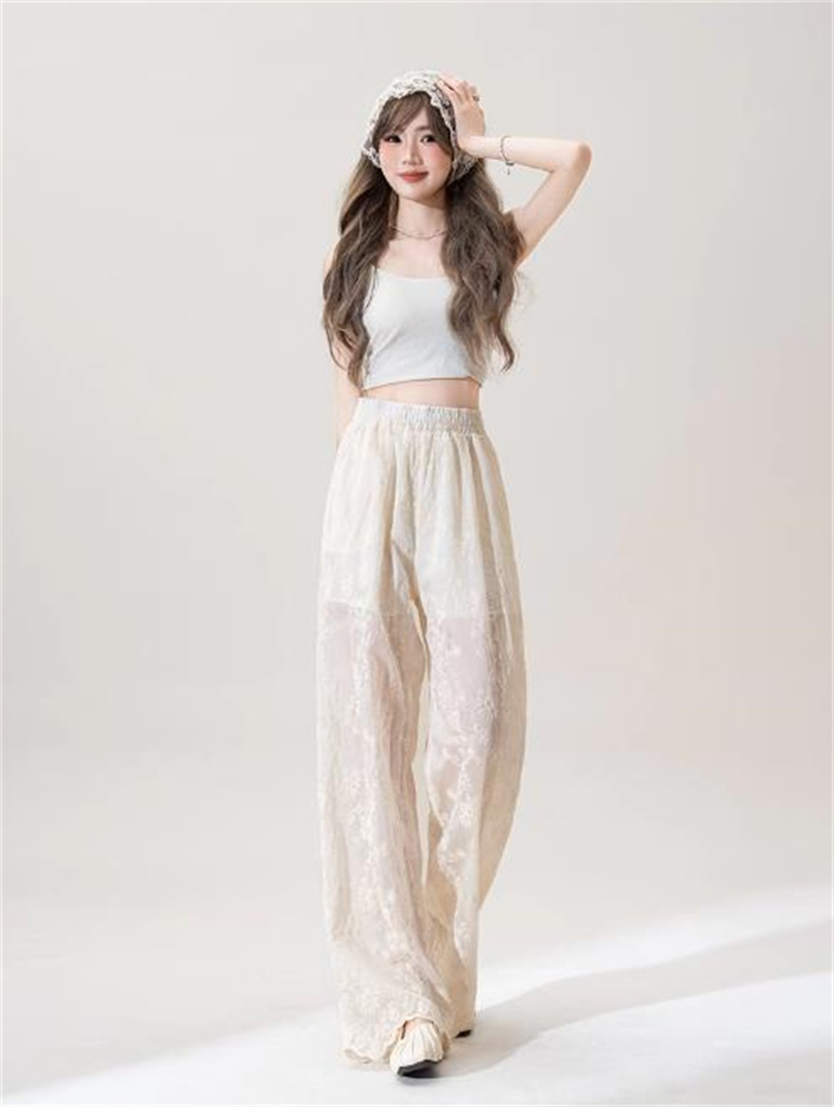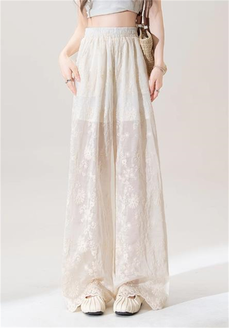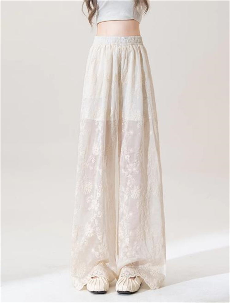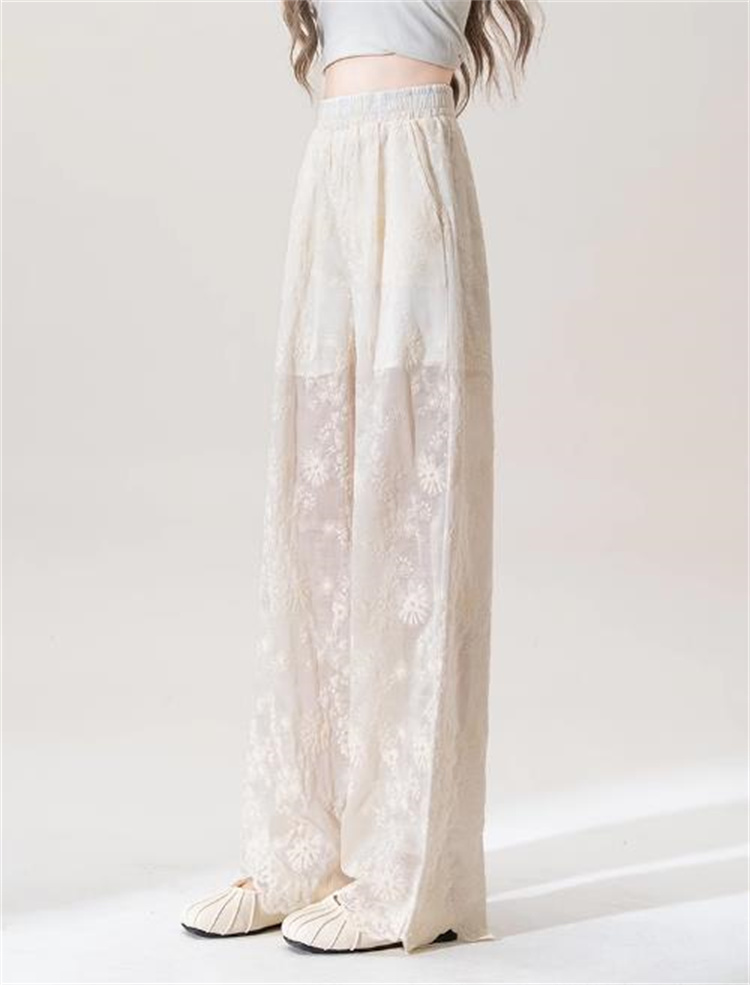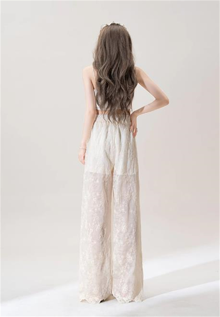 繊細なレース刺繍が施されたゆったりシルエットで、休日のリラックススタイルに最適。